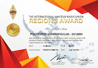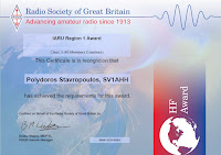 Amateur Radio SV1AHH * Operator: Polydoros Stavropoulos * QTH: Nikea, Greece * IARU Region: 1 * ITU Zone: 28 * DXCC Zone: 236 * CQ Zone: 20 * Locator: KM17TX * QSL only via: e-QSL, LotW, Clublog.org, Hamlog.online, QRZ.com or Direct * NO BUREAU * Member of the 5th Ocean Club * Διαχειριστής: Πολύδωρος Σταυρόπουλος, Μηχανολόγος Μηχανικός, MSc STEM στην εκπαίδευση. Πρέσβης του STEM για την Ελλάδα. Επιθεωρητής ασφάλειας, υγείας και ποιοτικού ελέγχου. email: sv1ahh@gmail.com